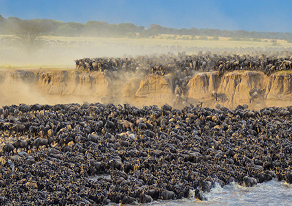 Travel to the world-famous Serengeti National Park via the Ngorongoro Conservation Area. Experience the endless plains and incredible wildlife diversity. If visiting during migration season, witness the spectacular wildebeest migration.